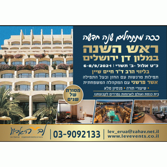 ארועי ראש השנה מתקיימים במלונות הטובים ביותר בישראל, בפיקוח צמוד ואישי של מנהלי הארוע של "לב הארוע".