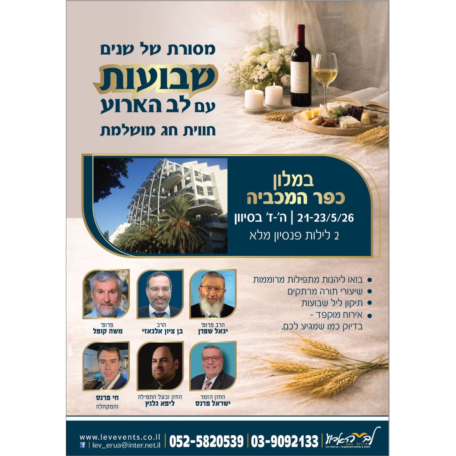 שבועות ב"לב הארוע" הוא הזדמנות נפלאה למצות את כל הטוב שבחג הנפלא הזה –